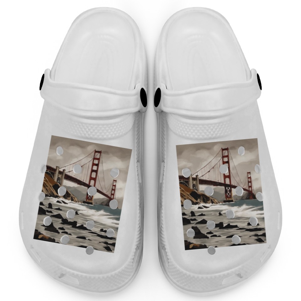 You are shopping for a stunning and trendy product Golden Gate Bridge California Clogs, Golden Gate For Kids WHITE belong theme Clogs at Printblur