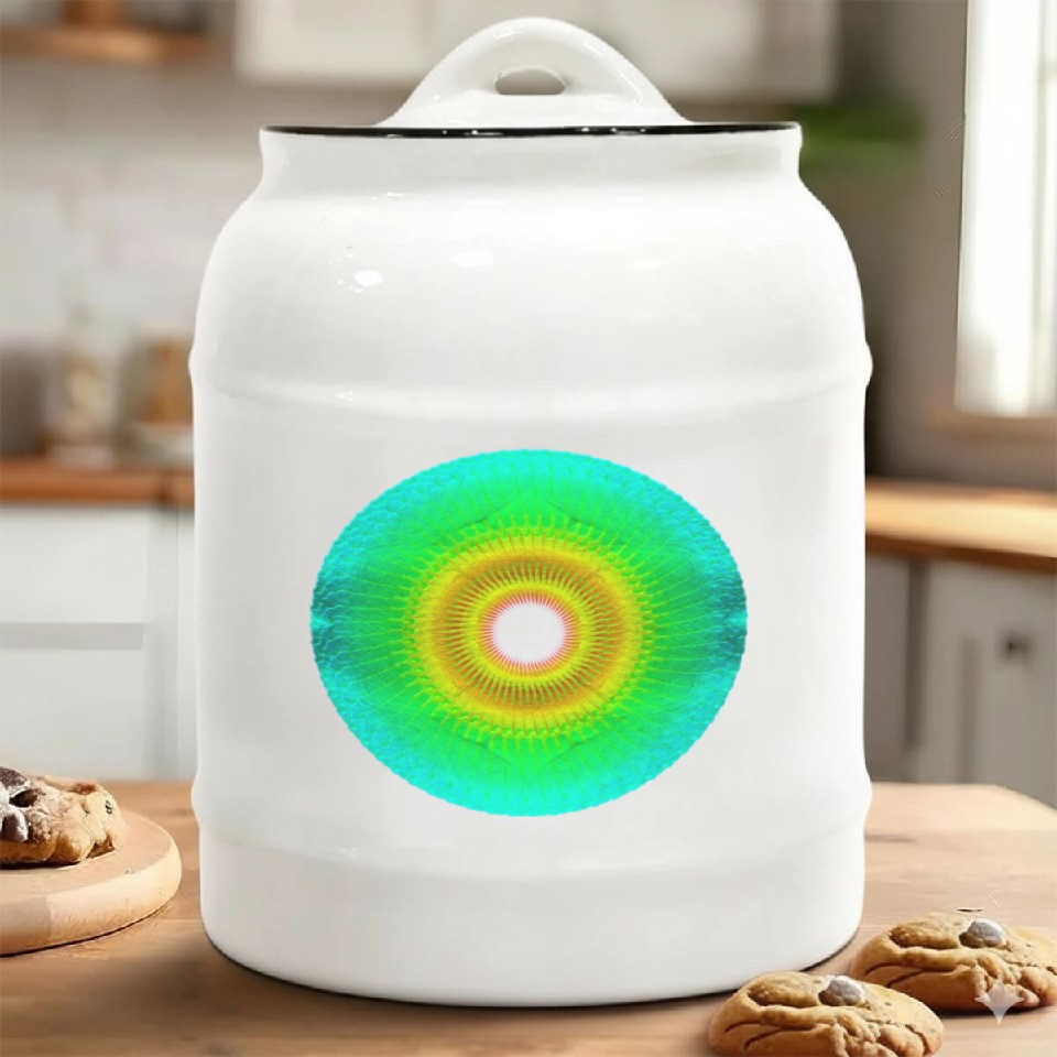 Own fascinating Golden Mint Green Geometrical Sun Circle Pattern Ceramic Cookie Jars or see more Ceramic Cookie Jars products now from Printblur shop to enjoy your shopping time!