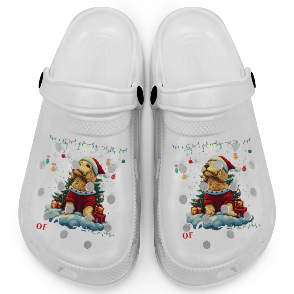 The product unique design you searched for is Golden Retriever Christmas Tree Decorations Dog Clogs For Kids WHITE belong theme Clogs at Printblur