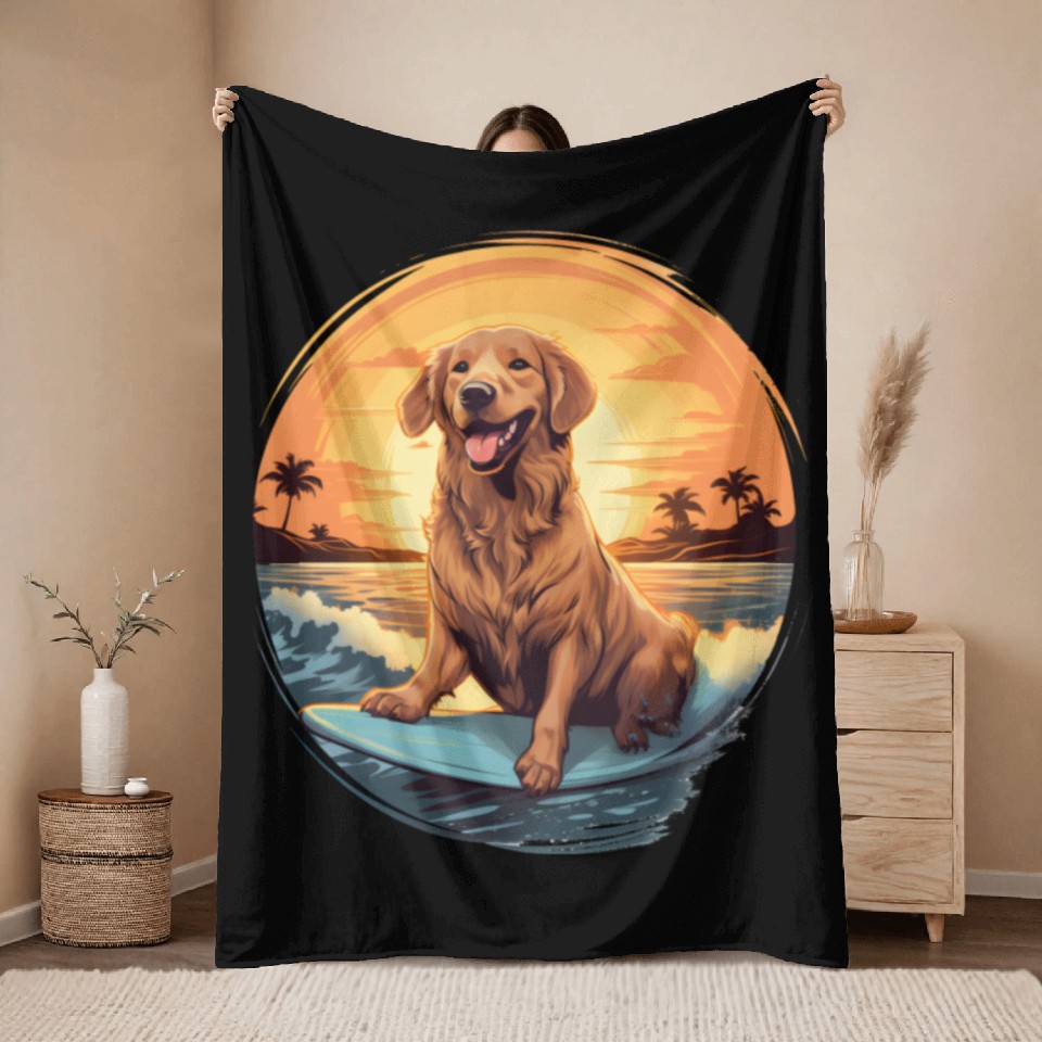 Own fascinating Golden Retriever Dog Surfing Happy Throw Blankets or see more Throw Blankets products now from Printblur shop to enjoy your shopping time!