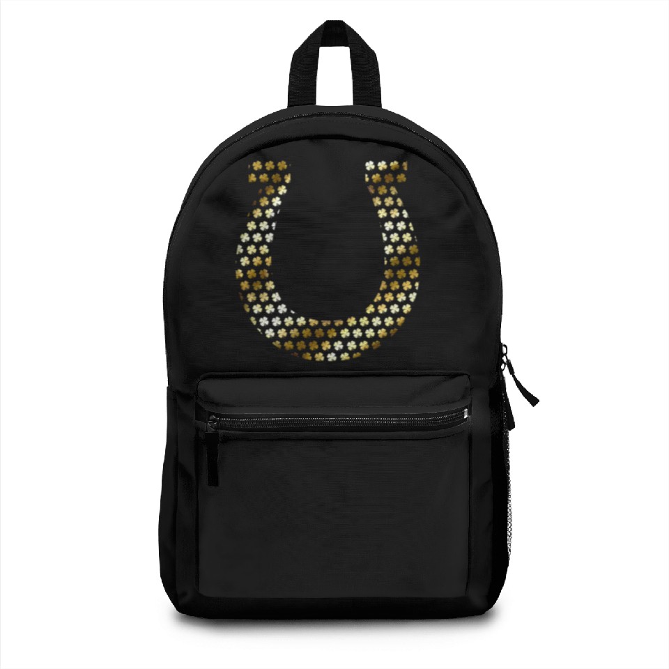 You are viewing one of the trendiest products Golden Shamrocks Forming A Horseshoe On St Backpacks For Black belong theme Backpacks at Printblur