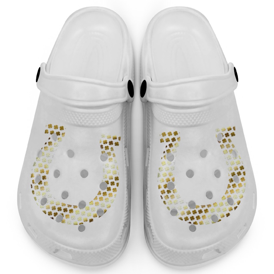 You are viewing one of the trendiest products Golden Shamrocks Forming A Horseshoe On St Clogs For Kids WHITE belong theme Clogs at Printblur