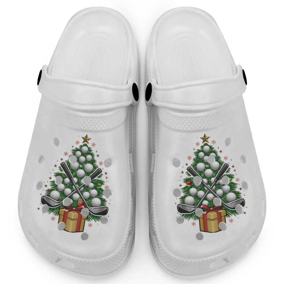 The item hot trend you're looking at is Golf Equipment Christmas Tree Christmas Golf Clogs For Kids WHITE belong theme Clogs at Printblur