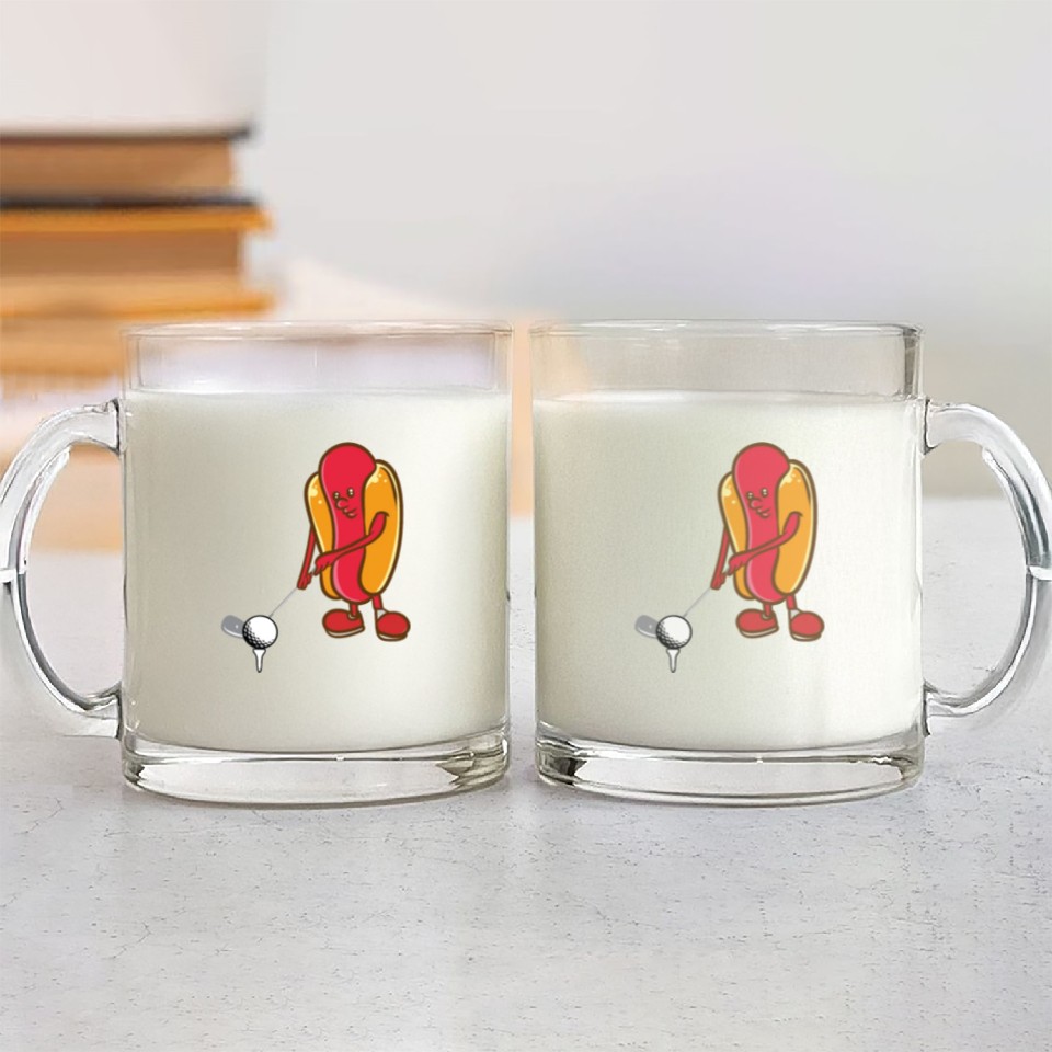 You are seeing a unique and impressive product Golf Hotdog Golfing Sausage Golf Player Glass Mugs For belong theme Glass Mugs at Printblur