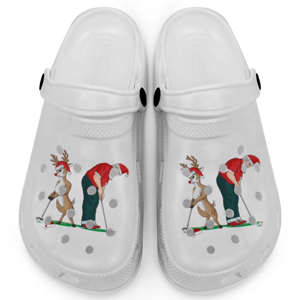 Golf Reindeer Golfer Christmas Santa Claus Golfing Clogs