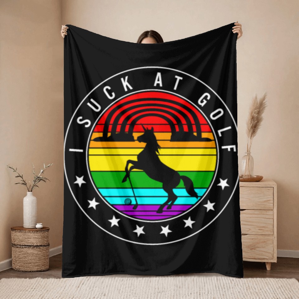 Shop for attractive Golf Throw Blankets, I Suck At Golf Unicorn Rainbow Retro or see more Throw Blankets products on https://printblur.com right now!