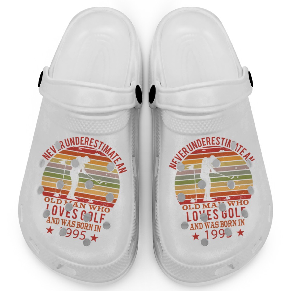 You are viewing an exclusive and elegant product Golfing Golfplayers Vintage 1995 Birthday Clogs For Kids WHITE belong theme Clogs at Printblur