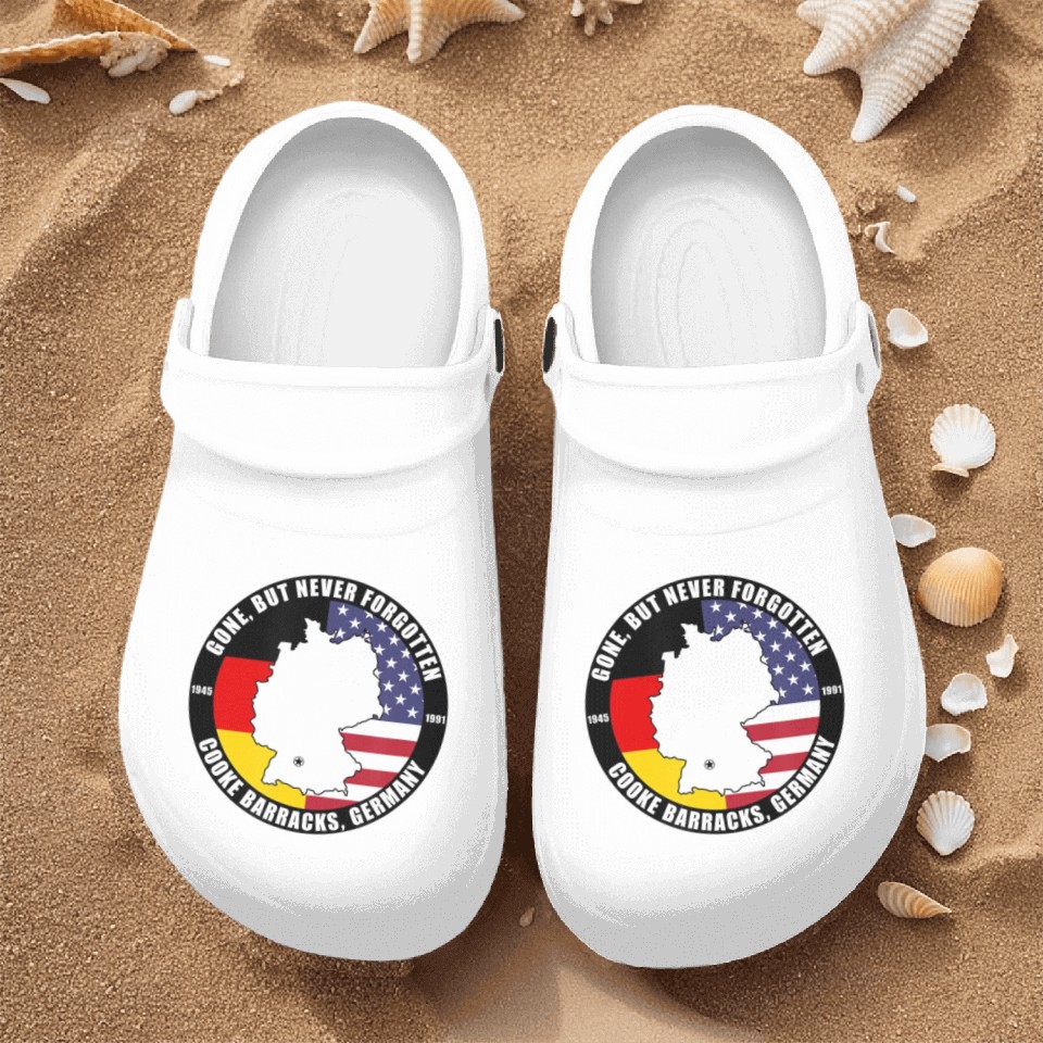 The item hot trend you're looking at is Gone But Never Forgotten Cooke Barracks Germany V Nurse Clogs For Men WHITE belong theme Nurse Clogs at Printblur