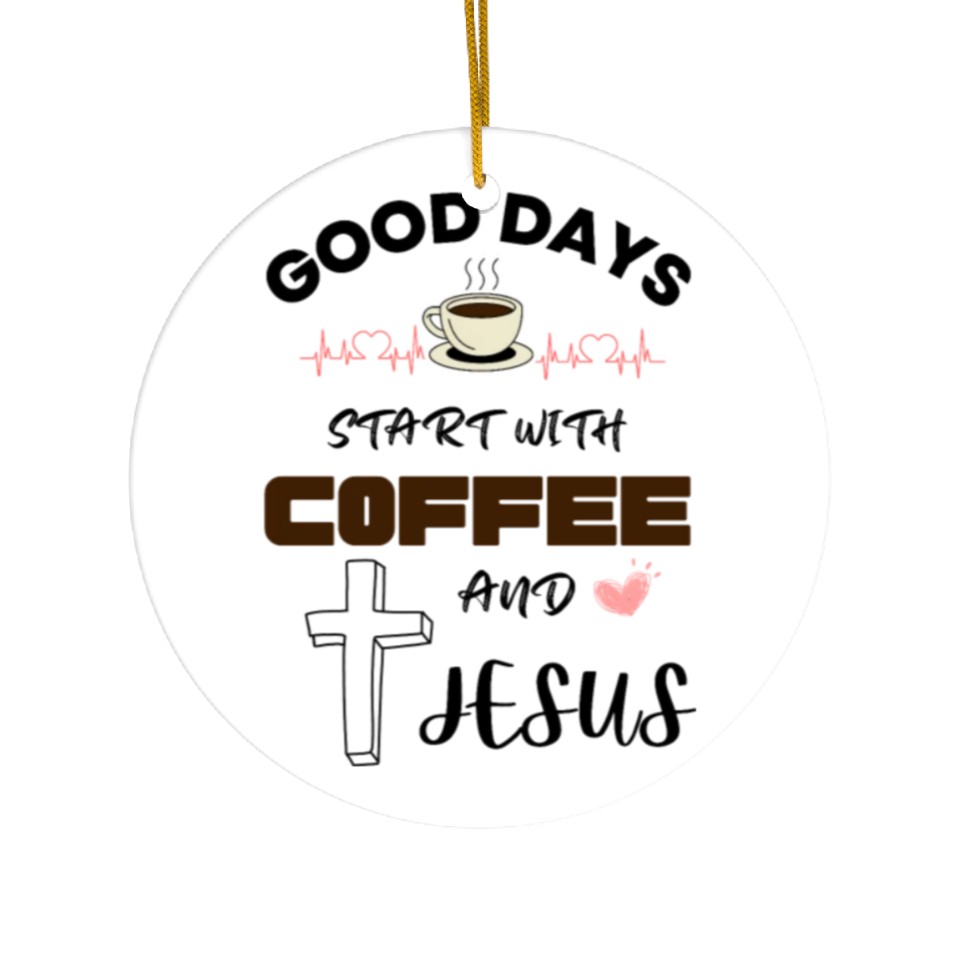 You're looking at the eye-catching product Good days start with coffee and jesus Ceramic Ornaments For WHITE belong theme Ceramic Ornaments at Printblur