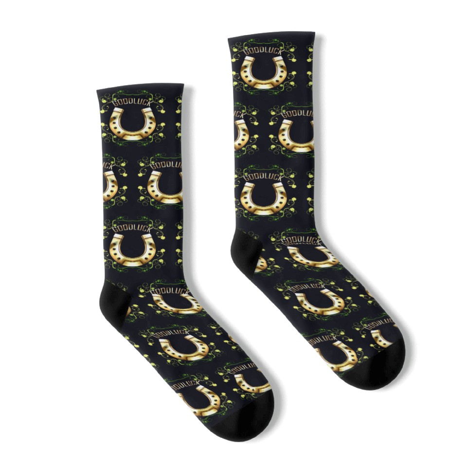 You're searching for a one-of-a-kind product Good Luck With A Golden Horseshoe For Irish St Socks For Black belong theme Socks at Printblur