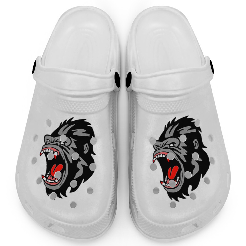 You're looking at the eye-catching product Gorilla Face Angry, Primate, Ape, Monkey Clogs For Kids WHITE belong theme Clogs at Printblur