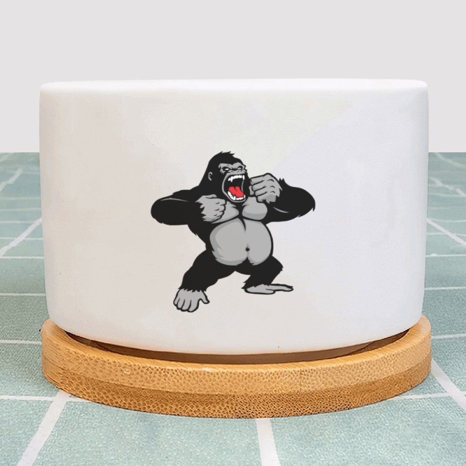 You are shopping for a stunning and trendy product Gorilla Standing, Gorilla Face, Monkey, Ape, Plant Pots For WHITE belong theme Plant Pots at Printblur