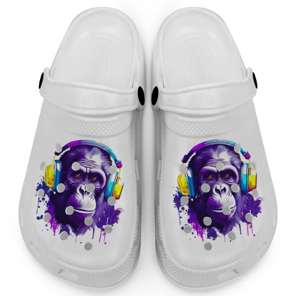 You're searching for a one-of-a-kind product Gorilla with Headphones Music Monkey Clogs For Kids WHITE belong theme Clogs at Printblur