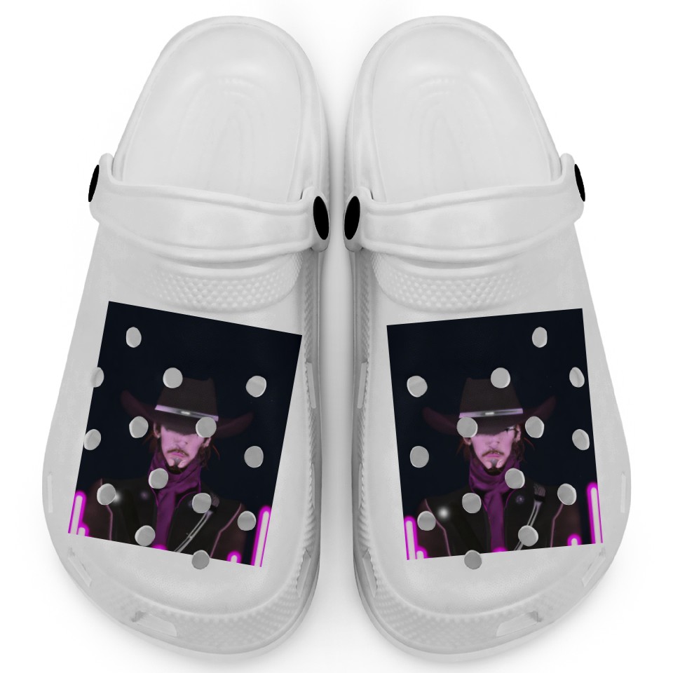 You're looking at the eye-catching product Goth Synthwave Outrun Goth Cowboy Clogs For Kids WHITE belong theme Clogs at Printblur