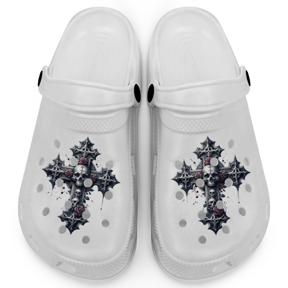 Own fascinating Gothic Cross Collection - Skulls and Red Roses Clogs or see more Clogs products now from Printblur shop to enjoy your shopping time!