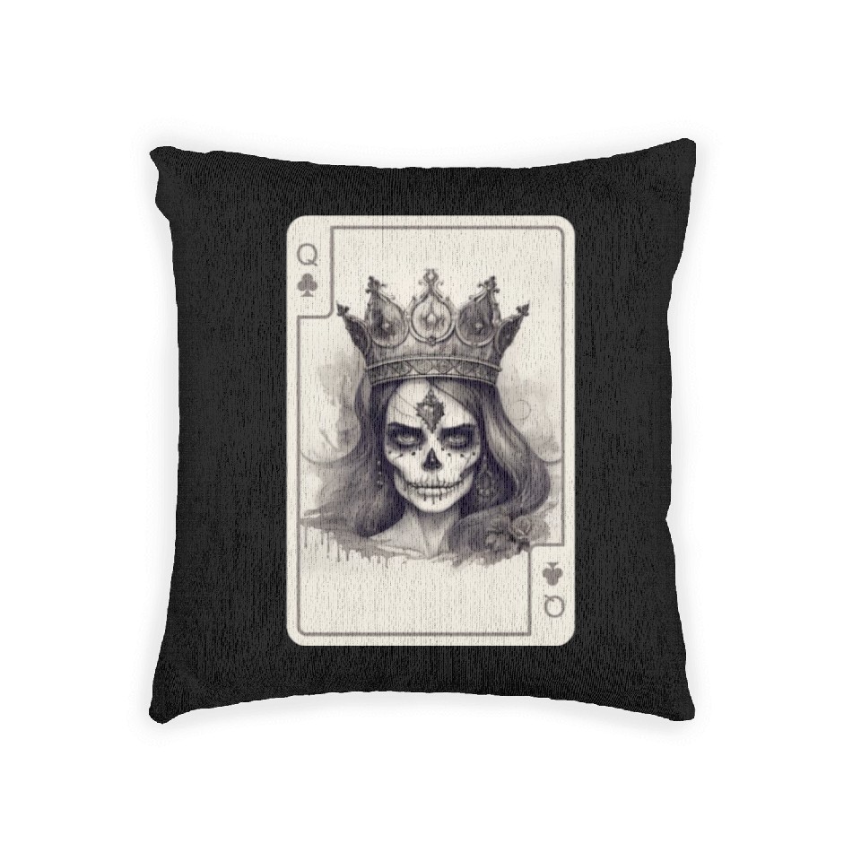 You are viewing an exclusive and elegant product Gothic Poker Card Game Creepy Queens Skull Woven Pillows For Black belong theme Woven Pillows at Printblur
