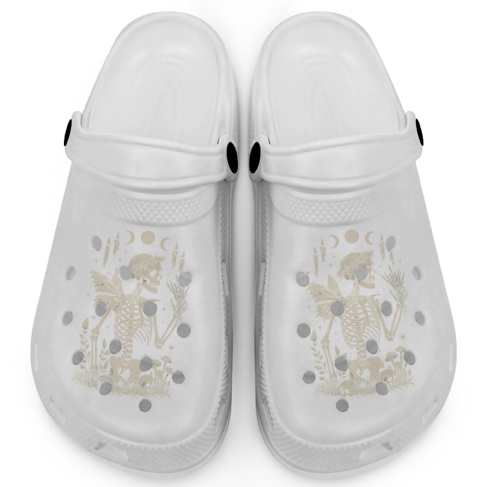 You're searching for a one-of-a-kind product Gothic Skeleton Fairy With Moon Phases Clogs For Kids WHITE belong theme Clogs at Printblur
