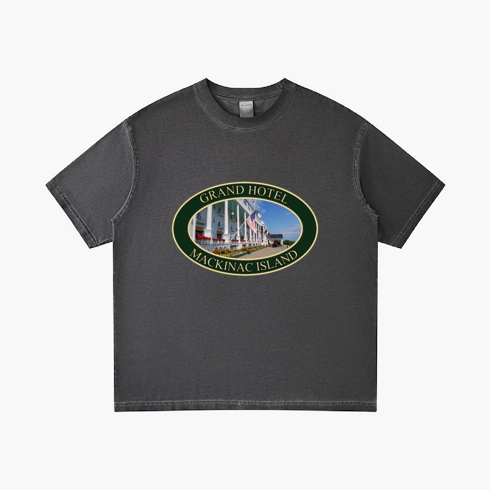 You are shopping for a stunning and trendy product Grand Hotel on Mackinac Island, Michigan Gradient T Shirts For Men Washed Black belong theme Gradient T-Shirts at Printblur