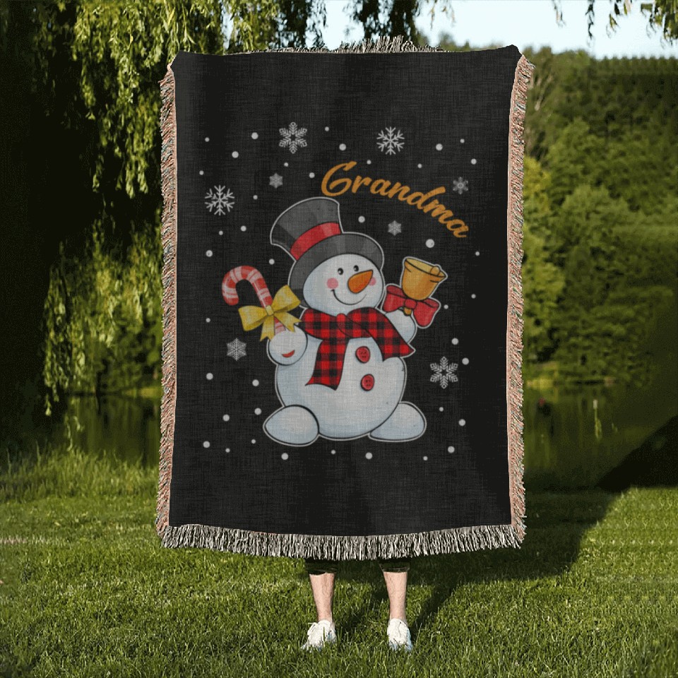 You are shopping for a stunning and trendy product Grandma Snowman Candy Cane Christmas Red Plaid Woven Blankets For Black belong theme Woven Blankets at Printblur