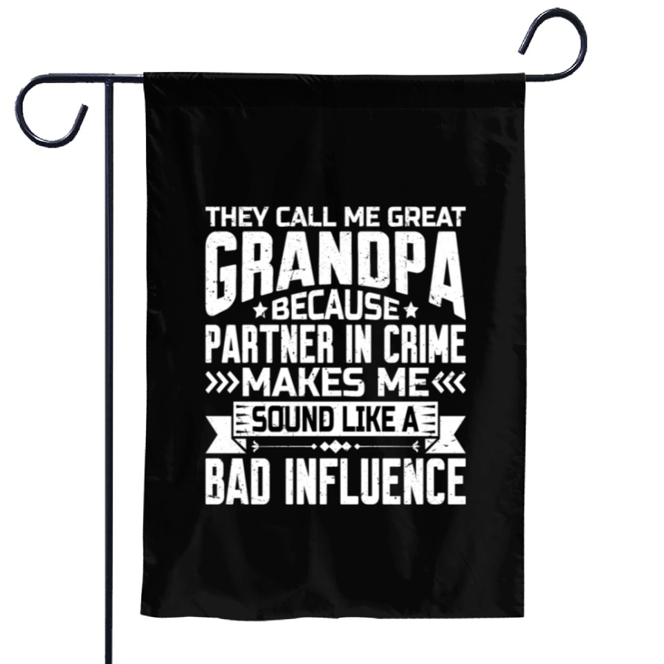 Shop for attractive Grandpa Because Partner In Crime Makes Me Bad 2 Garden Flags or see more Garden Flags products on https://printblur.com right now!