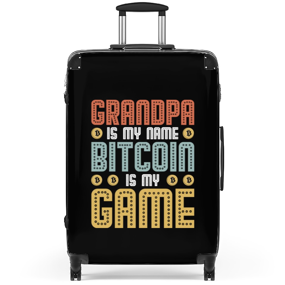 You are shopping for a stunning and trendy product Grandpa is my name Bitcoin is my Game Suitcases For Black belong theme Suitcases at Printblur