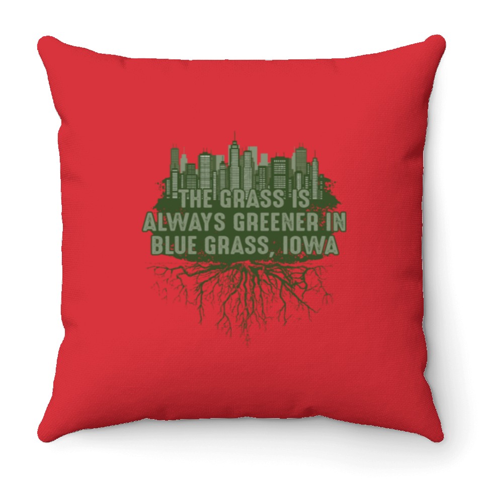 You're searching for a one-of-a-kind product Grass Greener in Blue Grass Iowa Pun IA Joke Des M Throw Pillows For Cover Only Red belong theme Throw Pillows at Printblur