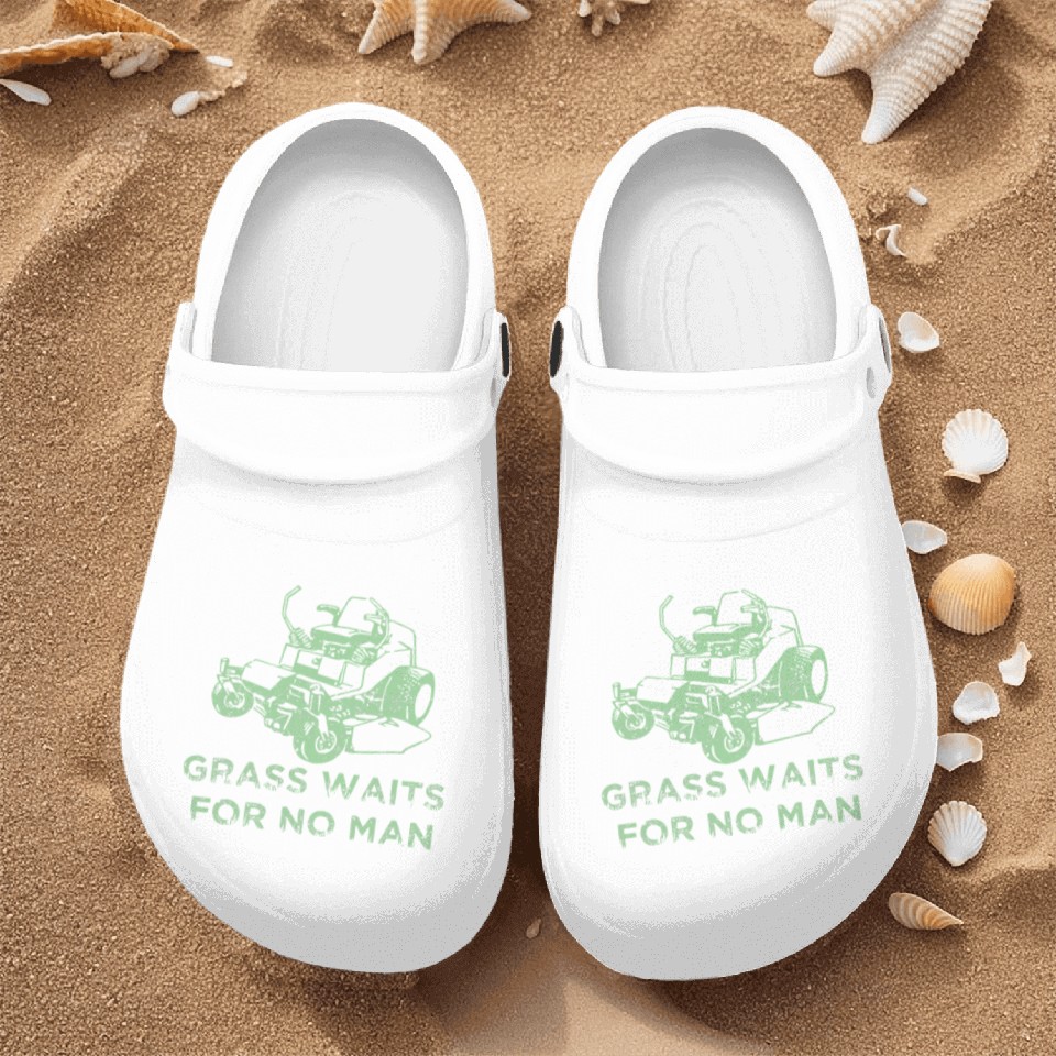 Grass Waits For No Man Funny Mens Grass Cutting Nurse Clogs