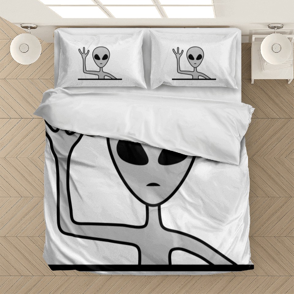 Shop for attractive Gray male alien waving Bedding Sets or see more Bedding Sets products on https://printblur.com right now!