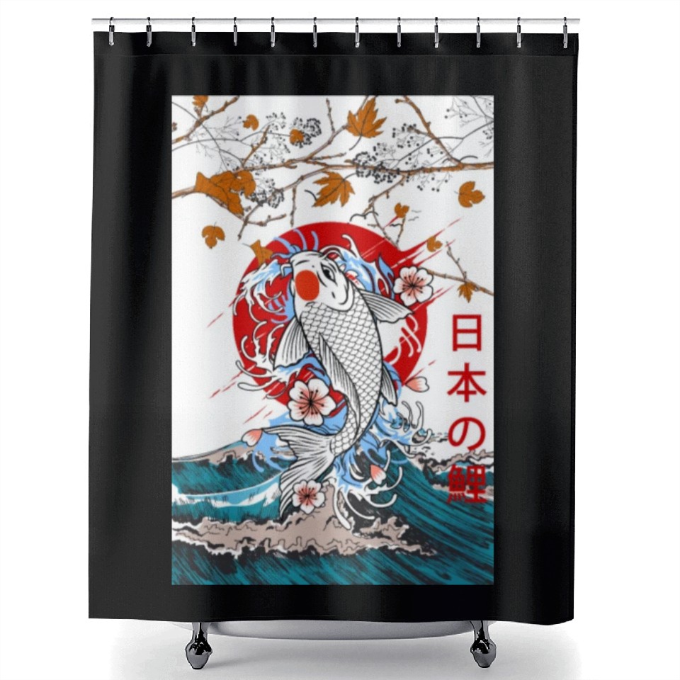 You're searching for a one-of-a-kind product Great Wave off Kanagawa Japanese Blossom Koi Fish Shower Curtains For Black belong theme Shower Curtains at Printblur