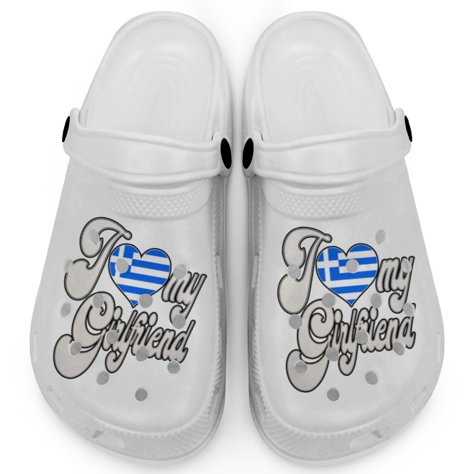 You are seeing a unique and impressive product GreeceI Love My Greek Girlfriend Clogs For Kids WHITE belong theme Clogs at Printblur