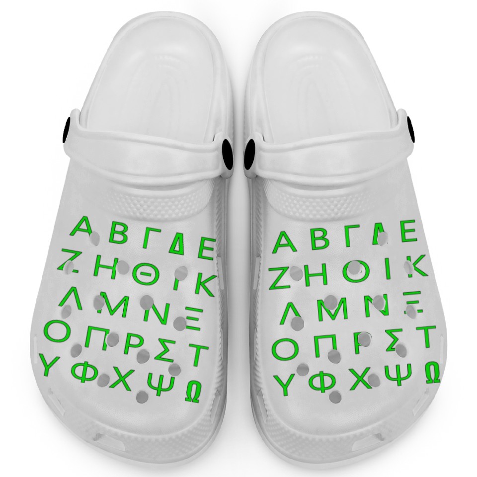 Buy eye-catching Greek Alphabet - Green Clogs or see more Clogs products at Printblur shop now to explore many surprises from our shop!