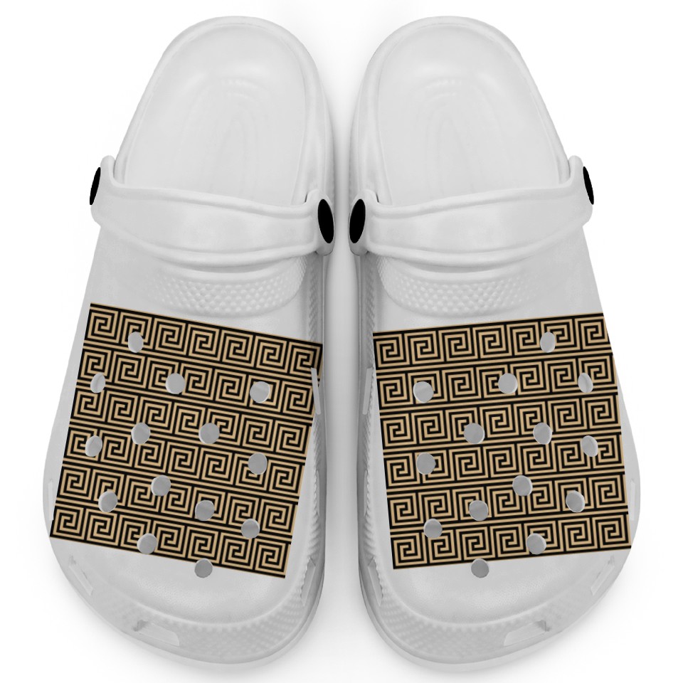 You are seeing a unique and impressive product Greek Meander Key Squares Pattern Brown Clogs For Kids WHITE belong theme Clogs at Printblur