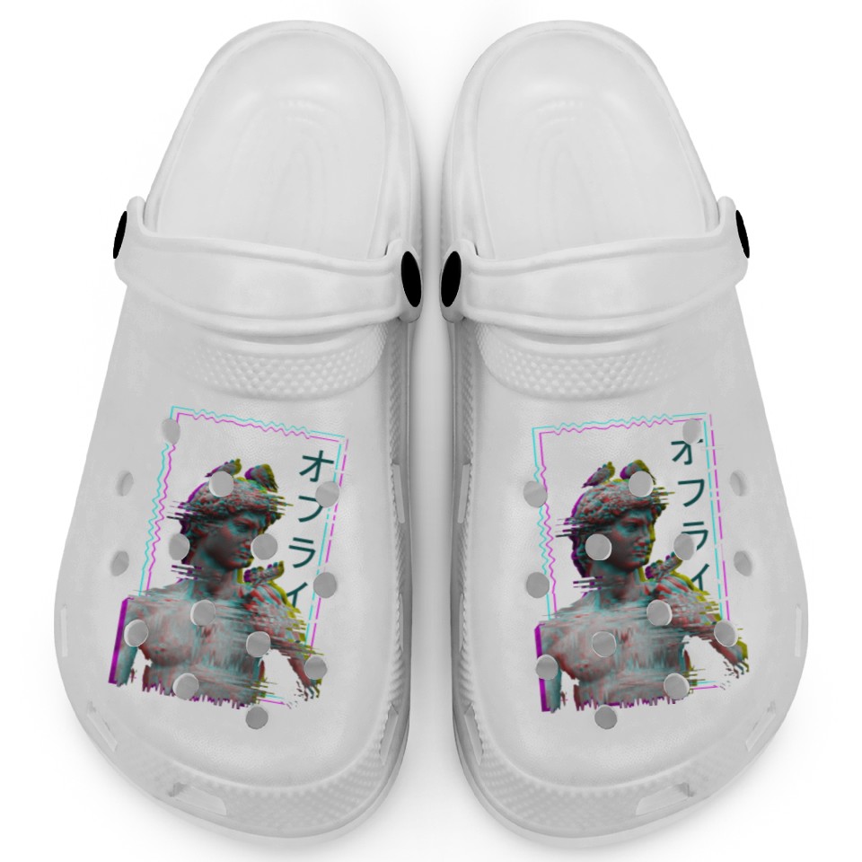 You are seeing a unique and impressive product Greek Statue Ancient Vaporwave Synthwave Glitch Clogs For Kids WHITE belong theme Clogs at Printblur
