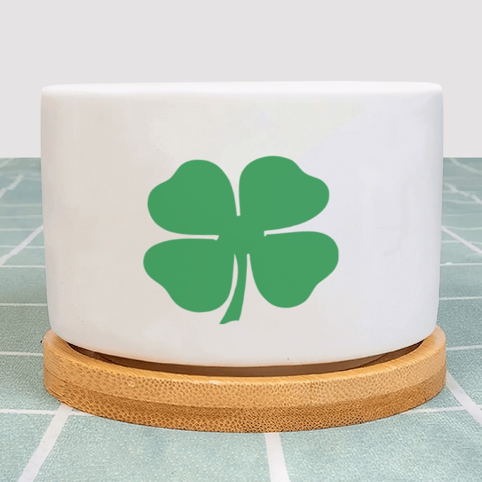 You are shopping for a stunning and trendy product Green 4 Leaf Clover Solid Plant Pots For WHITE belong theme Plant Pots at Printblur