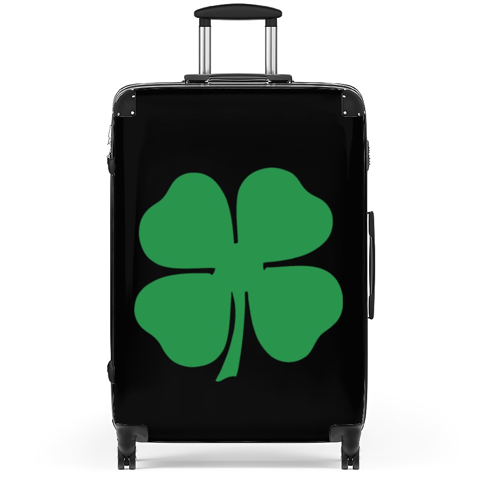 You are shopping for a stunning and trendy product Green 4 Leaf Clover Solid Suitcases For Black belong theme Suitcases at Printblur