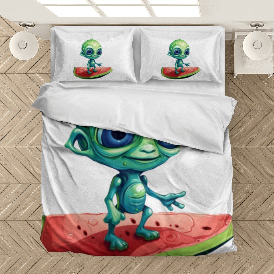 Shop for impressive Green Alien Meets Watermelon: Exotic Encounter Bedding Sets or see more Bedding Sets products right now on Printblur to enjoy your happiness!