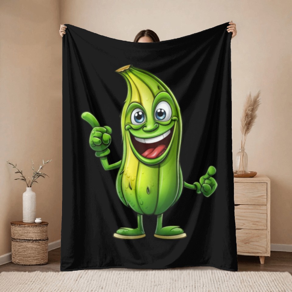 You're searching for a one-of-a-kind product Green Alien Pickle Dude: Cosmic Crunch Throw Blankets For Black belong theme Throw Blankets at Printblur