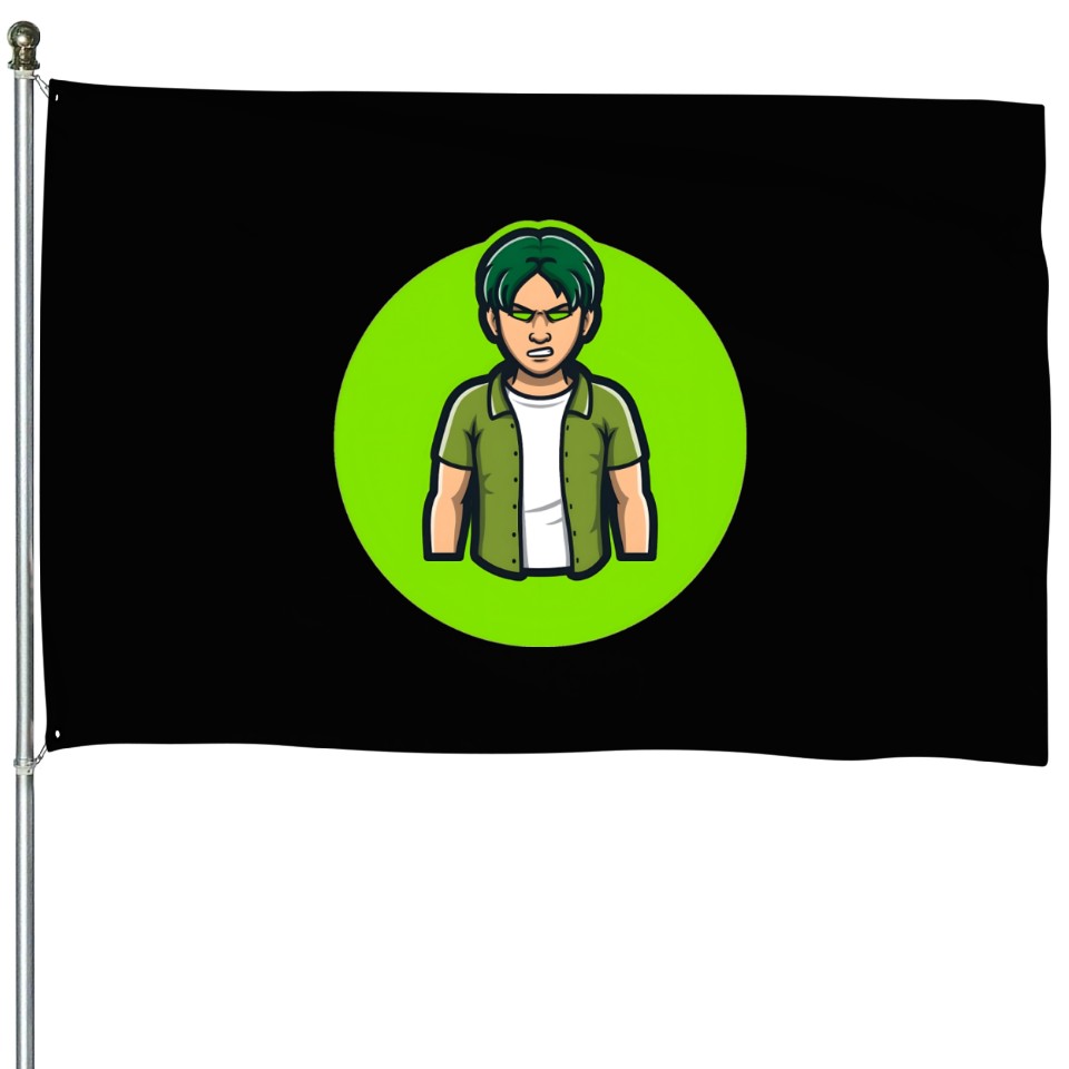 You are shopping for a stunning and trendy product Green Angry Boy Gaming Mascot Avatar House Flags For Black belong theme House Flags at Printblur