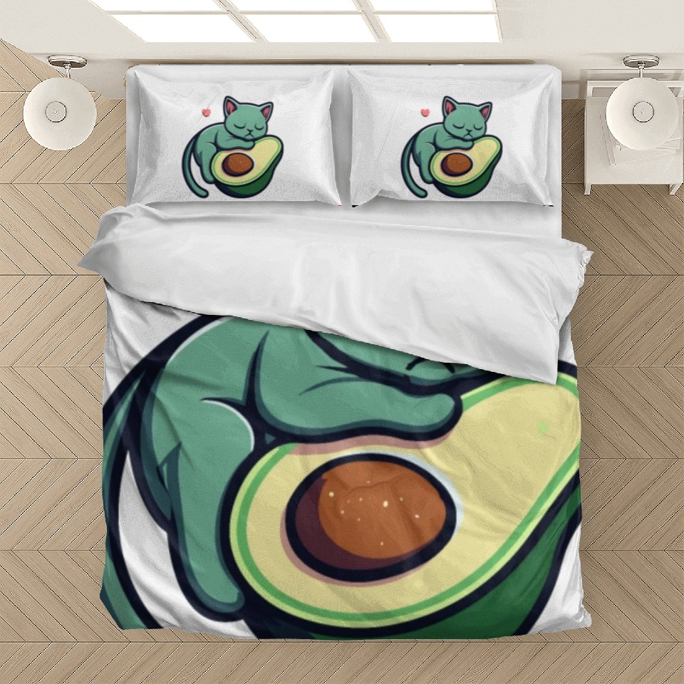 The item hot trend you're looking at is Green Cat Sleeping On An Avocado With Heart Bedding Sets For WHITE belong theme Bedding Sets at Printblur