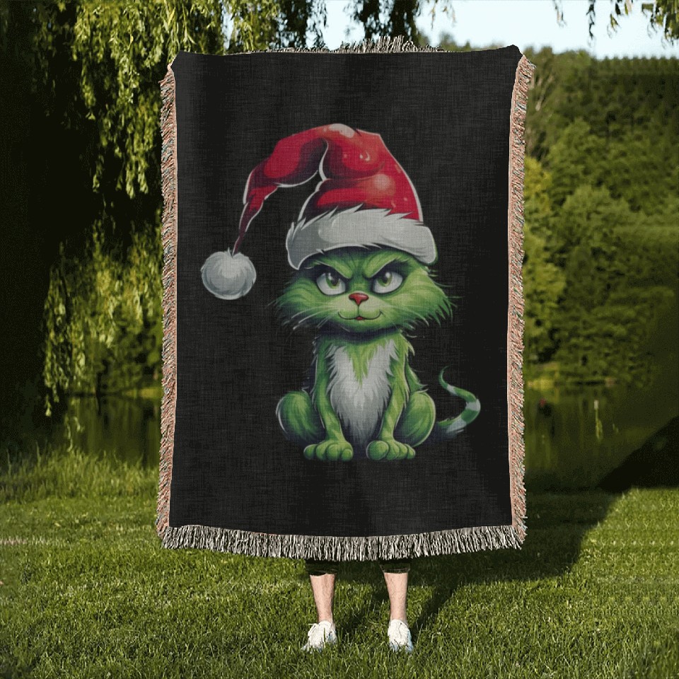 You are seeing a unique and impressive product Green Christmas Cat Woven Blankets For Black belong theme Woven Blankets at Printblur