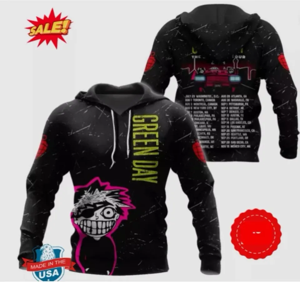 Shop for attractive Green day Black The Saviors 2024 Hoodie 3D or see more 3D Hoodies products on https://printblur.com right now!