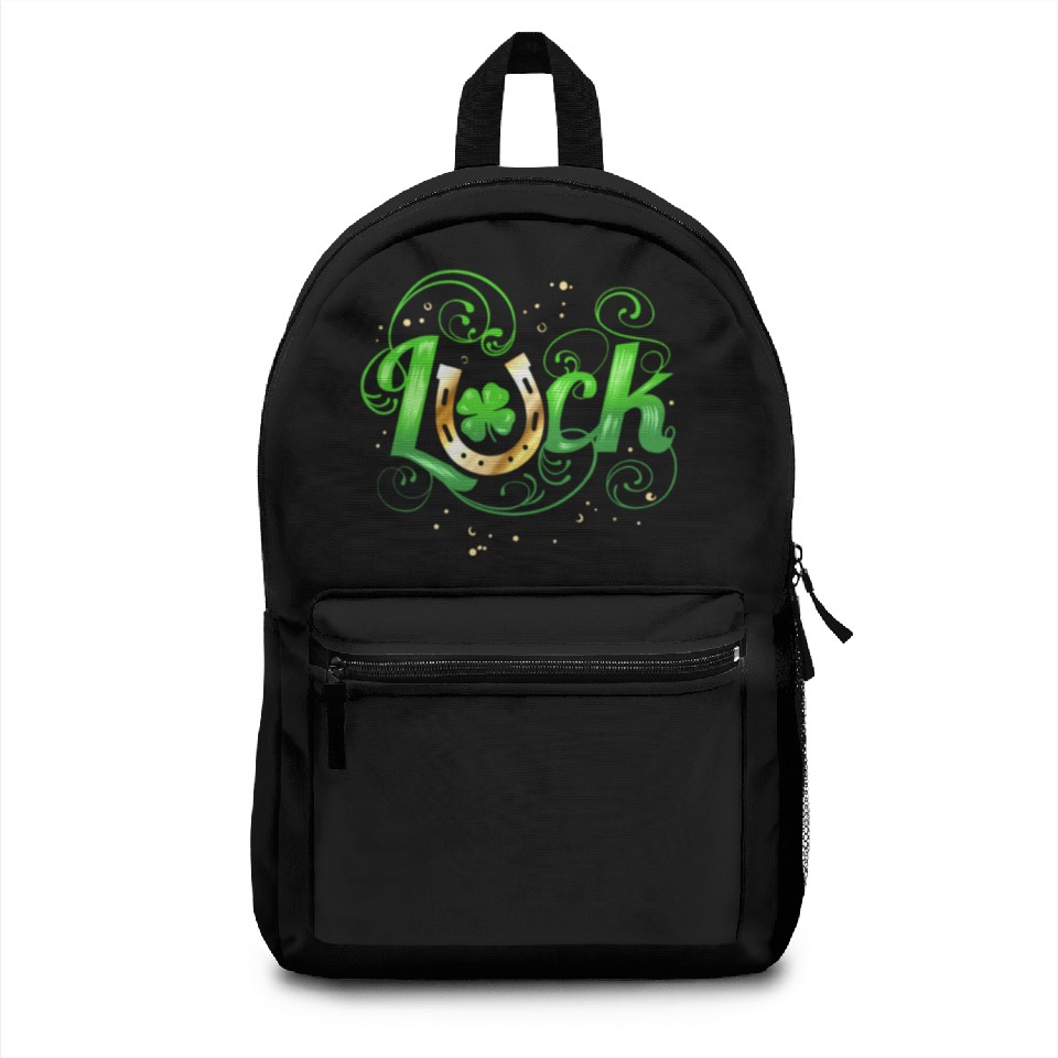 You're looking at the eye-catching product Green Golden Luck Logo With Horseshoe For St Backpacks For Black belong theme Backpacks at Printblur