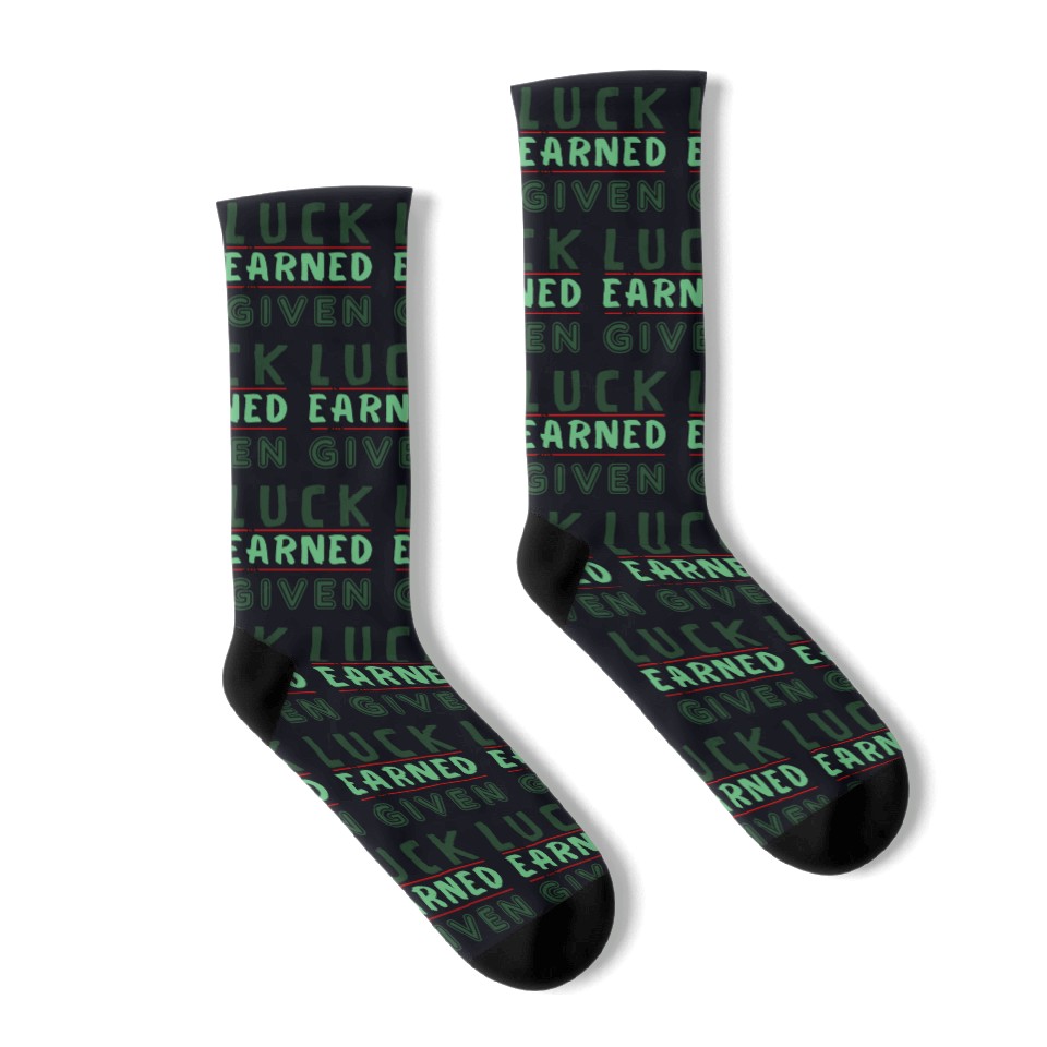 Buy eye-catching green Luck is earned not given Socks or see more Socks products at Printblur shop now to explore many surprises from our shop!