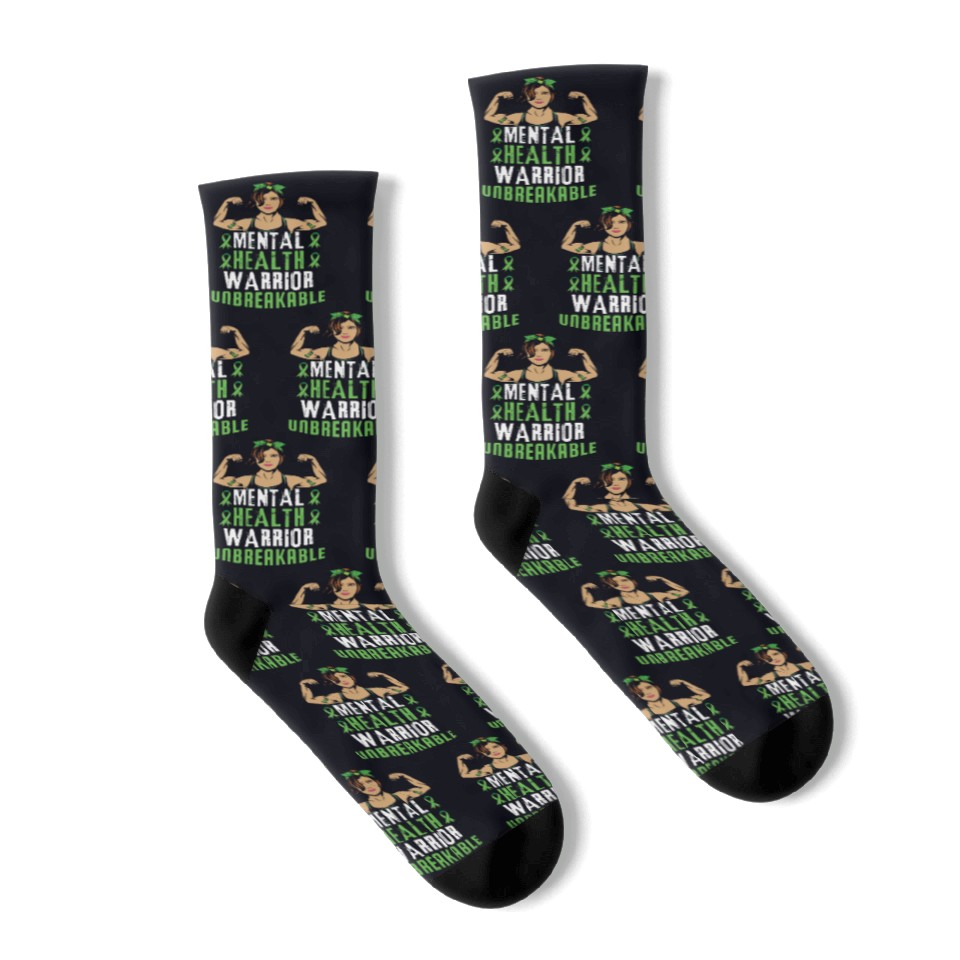 You are viewing one of the trendiest products Green Mental Health Warrior Awareness Month Socks For Black belong theme Socks at Printblur