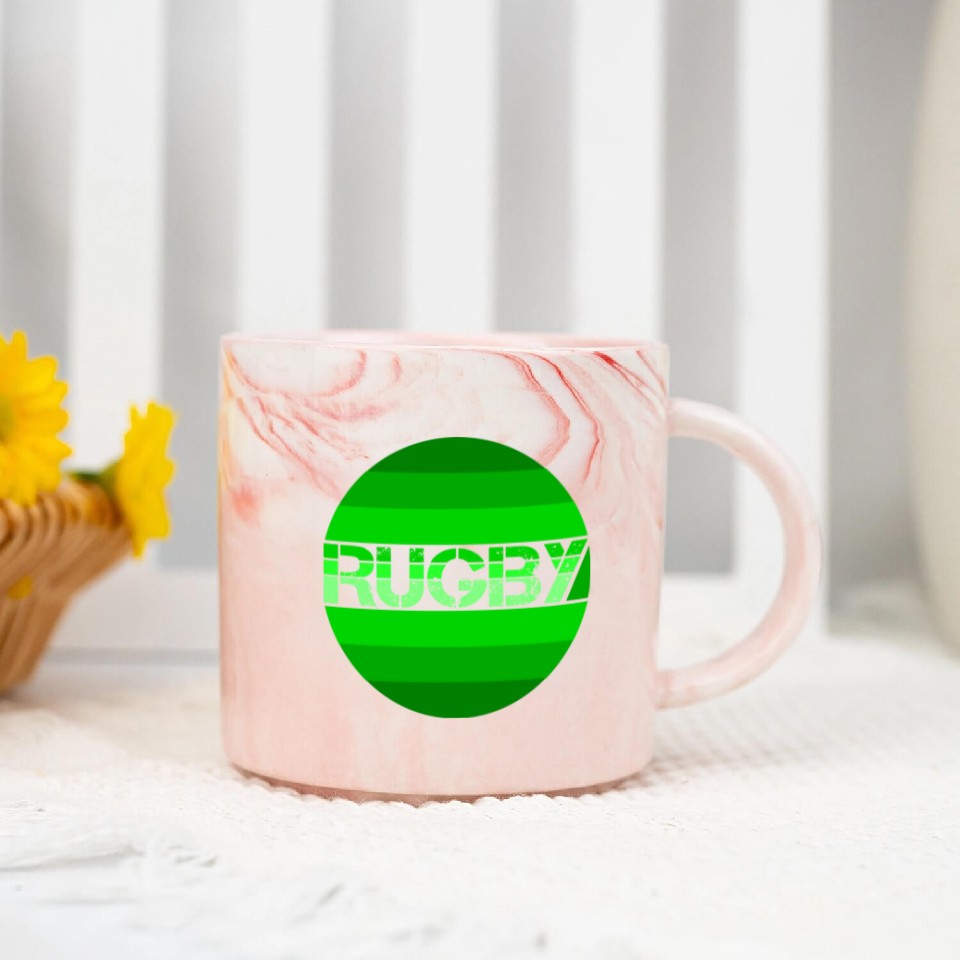 You are seeing a unique and impressive product Green Rugby Logo For Rugby Fan Marble Mugs For Pink belong theme Marble Mugs at Printblur