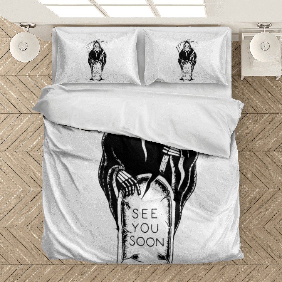 The item hot trend you're looking at is Grim Reaper See You Soon tattoo Bedding Sets For WHITE belong theme Bedding Sets at Printblur