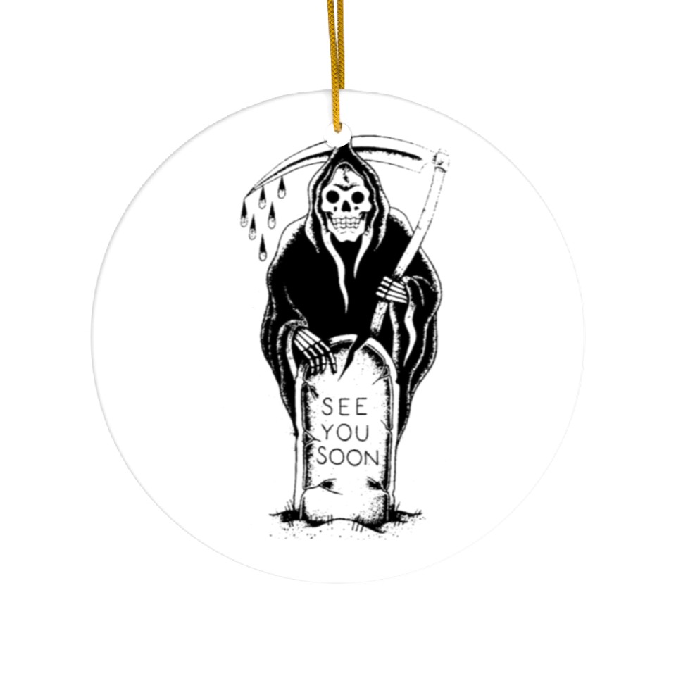 The item hot trend you're looking at is Grim Reaper See You Soon tattoo Ceramic Ornaments For WHITE belong theme Ceramic Ornaments at Printblur