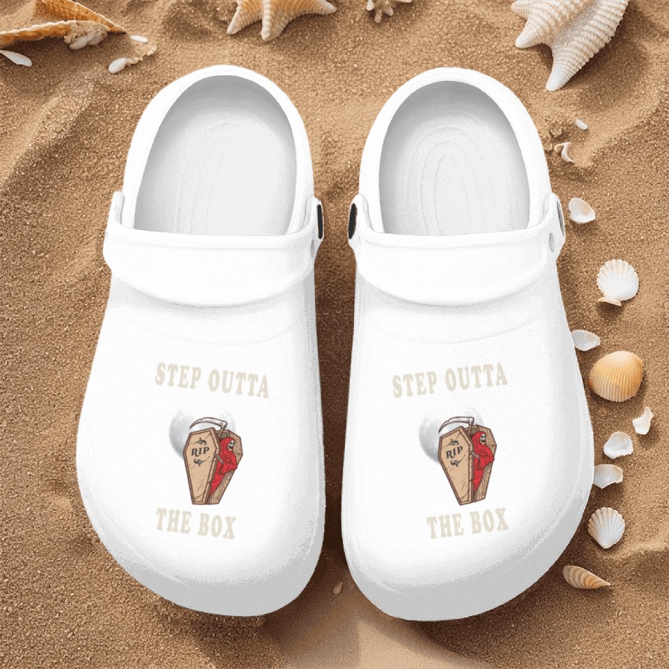 The product unique design you searched for is Grim Reaper with Moon Rise Step Outta The Box Nurse Clogs For Men WHITE belong theme Nurse Clogs at Printblur