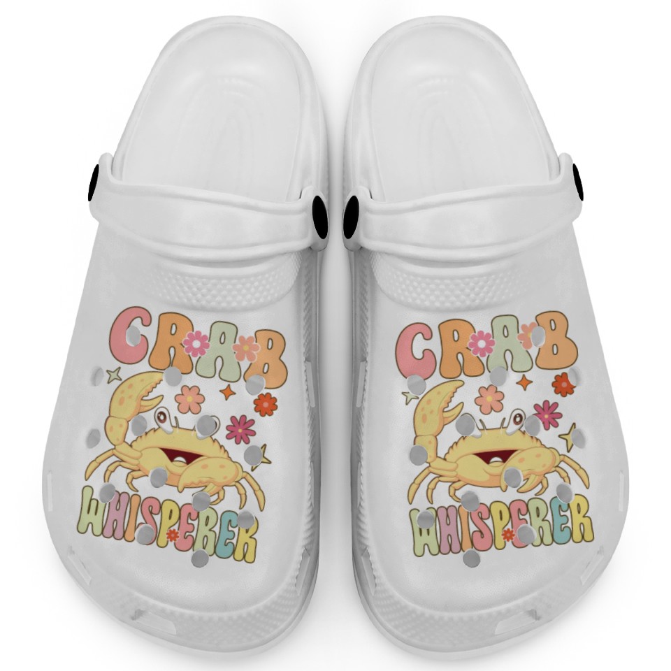 The item hot trend you're looking at is Groovy Crab Lover Seafood Lover Clogs For Kids WHITE belong theme Clogs at Printblur