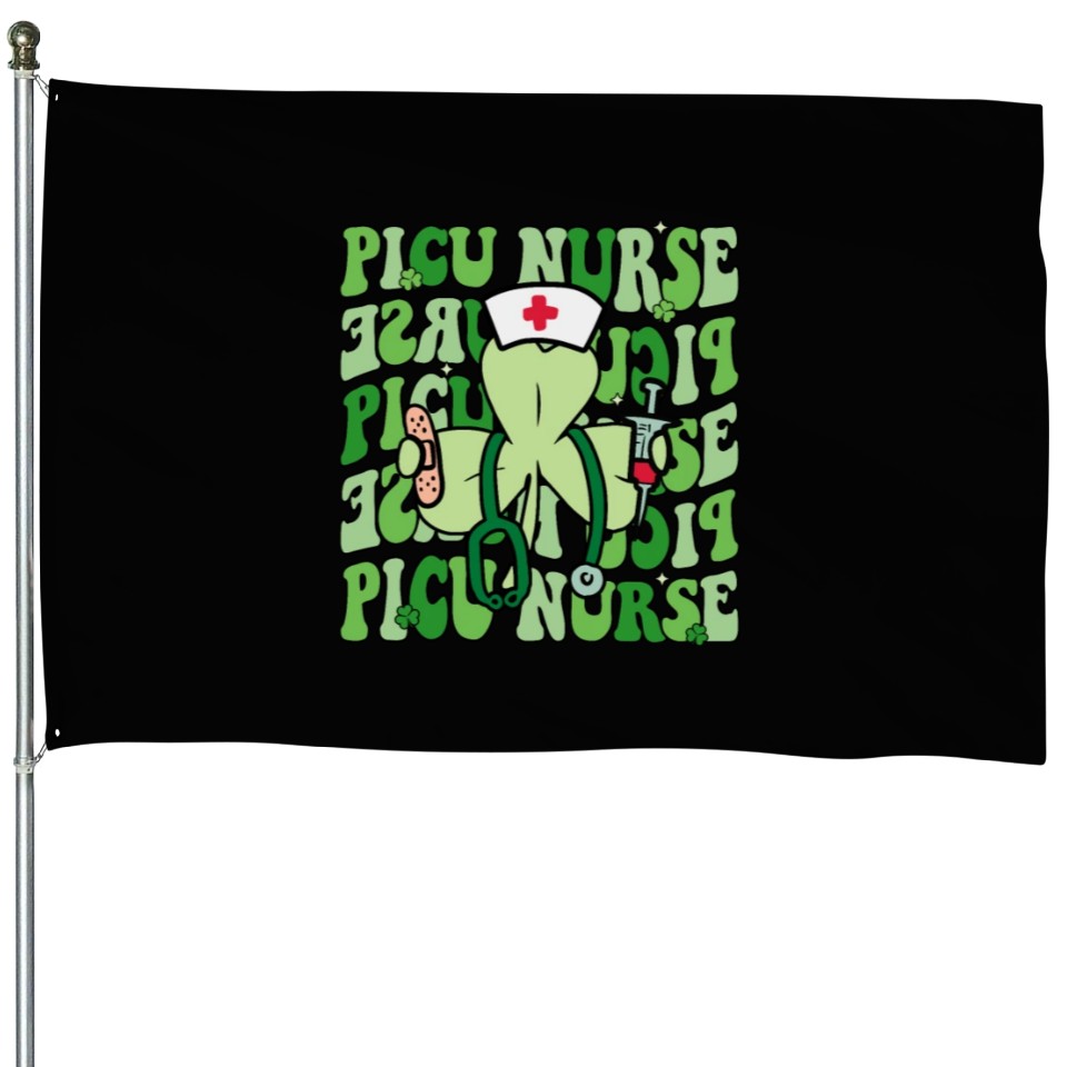 Shop for impressive Groovy PICU Nurse Funny Shamrock St House Flags or see more House Flags products right now on Printblur to enjoy your happiness!